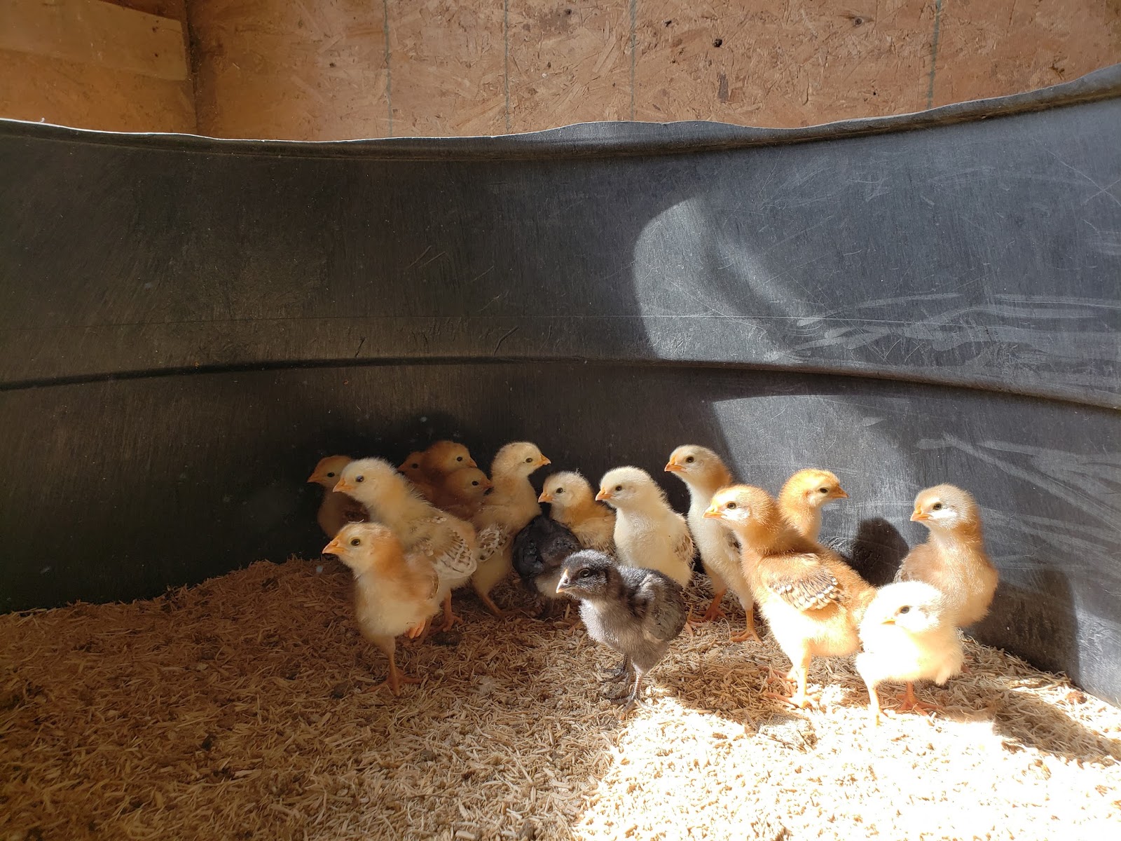 Not the greatest picture but it was the best we could do before their mama covered them up again. Next week I should have better pictures of these little ones and maybe more bits of fluff as I believe that Mama Hen II's eggs should be hatching anytime now. There may be another hen that wants to set also - we will see how that goes. Until next week, be well friends.