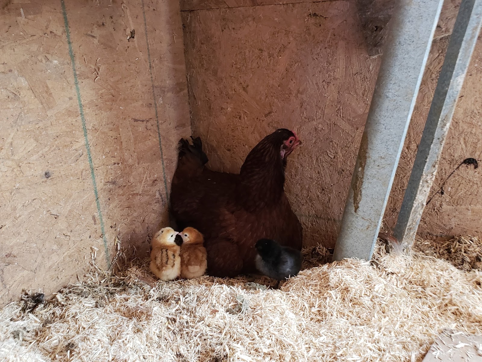 We moved Julio and then hens out to the Summer Coop Friday night but left behind one hen who had decided it's her turn to brood.