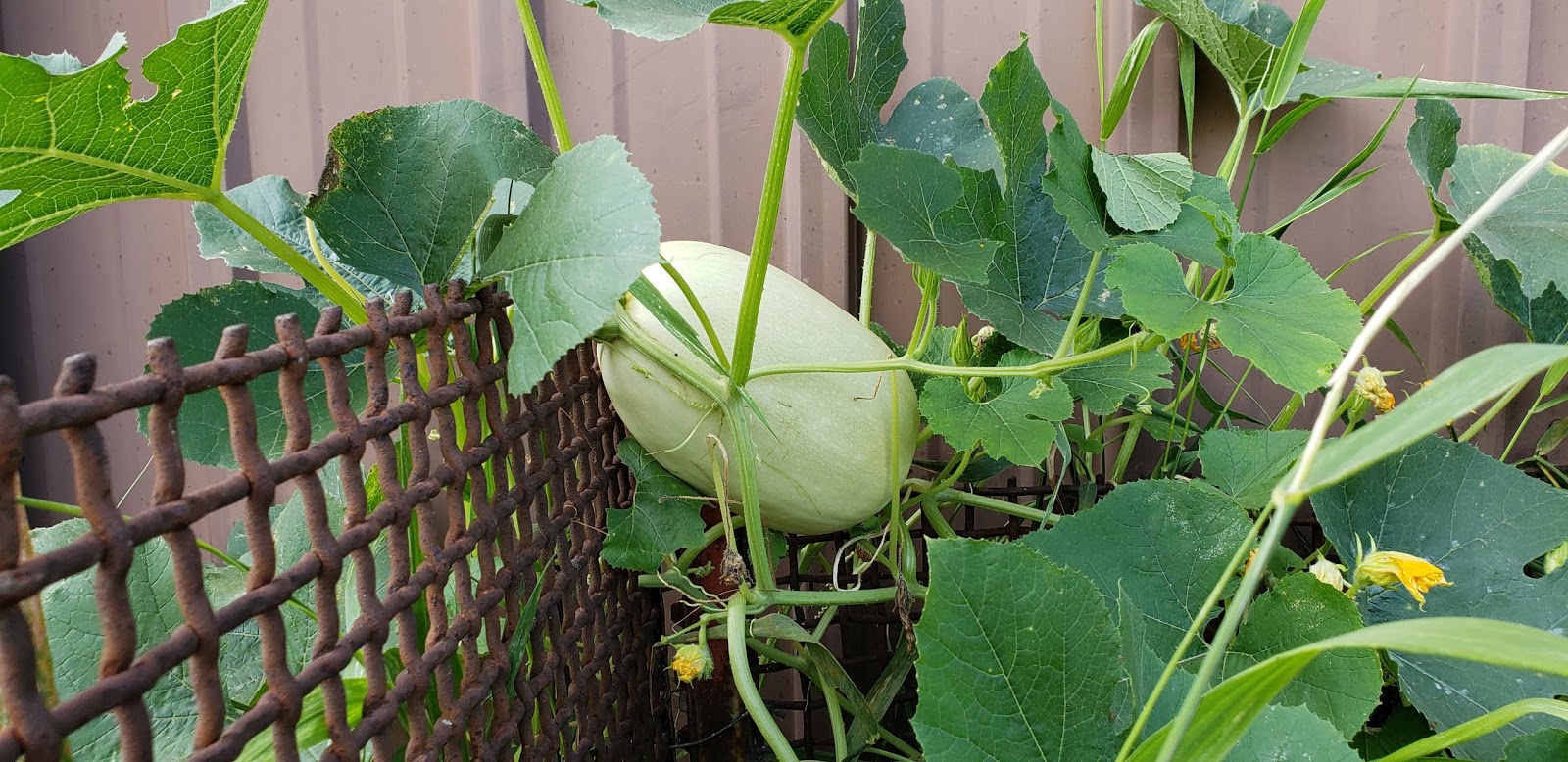 This squash is Speckled Hound. I think it is so pretty I just wanted to show it off before we eat it - I can only find a couple of them out there in the jungle.